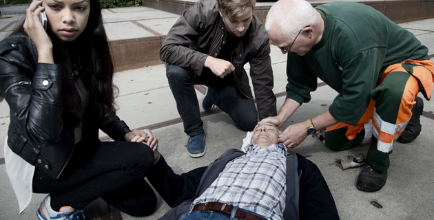 Hvis en person er bevidstløs og ikke trækker vejret normalt, er det tegn på hjertestop. Det første, du skal gøre er at ringe 1-1-2. Men hvordan hjælper du bedst den bevidstløse i minutterne, indtil ambulancen når frem?